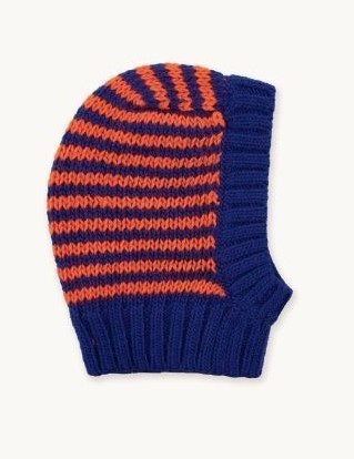 Балаклава крупной вязки в полоску красного цвета и цвета индиго. Модель выполнена из крупного трикотажного материала с отделкой в рубчик. Изготовлена из мягкой смеси шерсти мериноса и альпаки.Производство: ИСПАНИЯ
