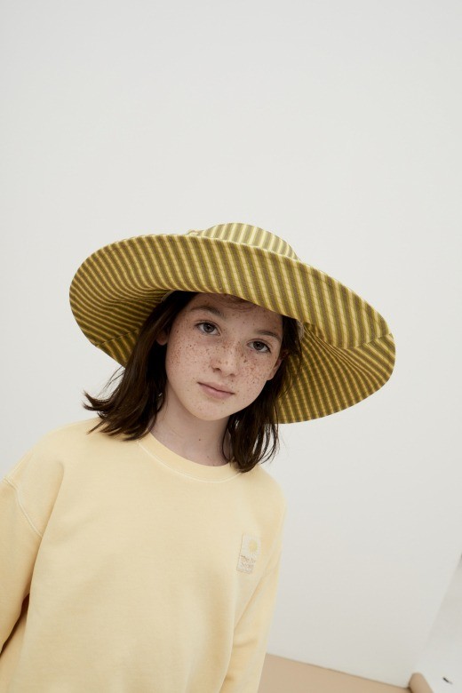 Шляпа из хлопка с набивными полосками. С длинными полями и контрастной окантовкой.Уход: Машинная стирка при температуре 30º. Не отбеливать. Сушка в стиральной машине. Гладить при средней температуре. Сухая чистка любым растворителем, кроме трихлорэтилена.