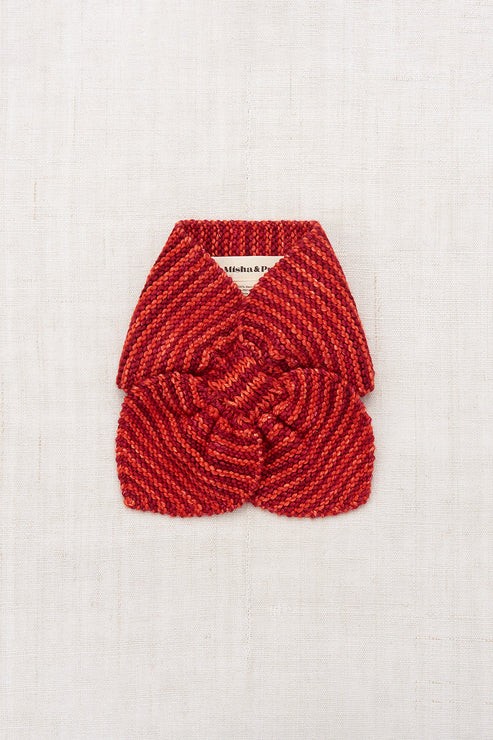 Фирменный шарф ручной вязки Misha & Puff из более плотной шерсти мериноса, который легко застегивается на косынку. Его можно носить поверх капюшона, чтобы он оставался на месте и согревал голову и шею. Идеальное дополнение к любому наряду. Благодаря чередующимся полосам в виде слоев.