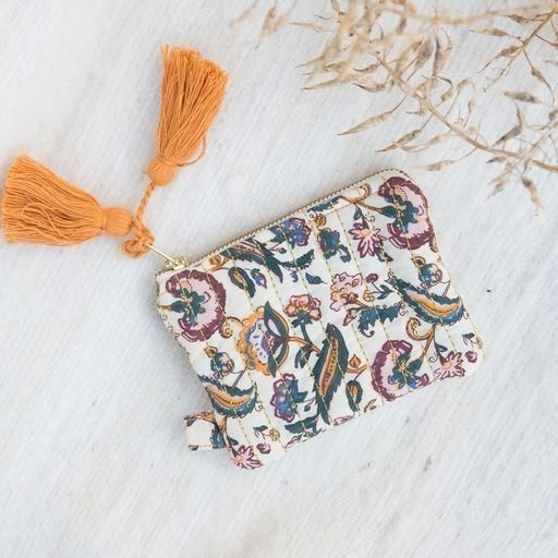 Милый кошелек с цветочным принтом, мягкой водоотталкивающей подкладкой и помпонами ручной работы, который можно носить повсюду благодаря своим небольшим размерам, привносит в нашу повседневную жизнь нотку богемы.Размер: 12 х 9 смУход: Не сушить в стиральной машине, сушить естественным способом, машинная стирка при температуре 30°.Производство: ИНДИЯ