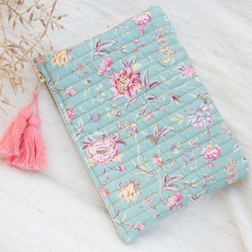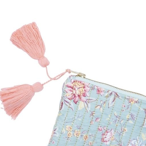 Практичный и богемный аксессуар, этот стеганый клатч с цветочным принтом, вертикальной строчкой из люрекса и кисточками ручной работы незаменим в повседневной жизни. Подкладка водоотталкивающая в полоску.Размер: 21 х 17,5 смУход: Не сушить в стиральной машине, сушить естественным способом, машинная стирка при температуре 30°.