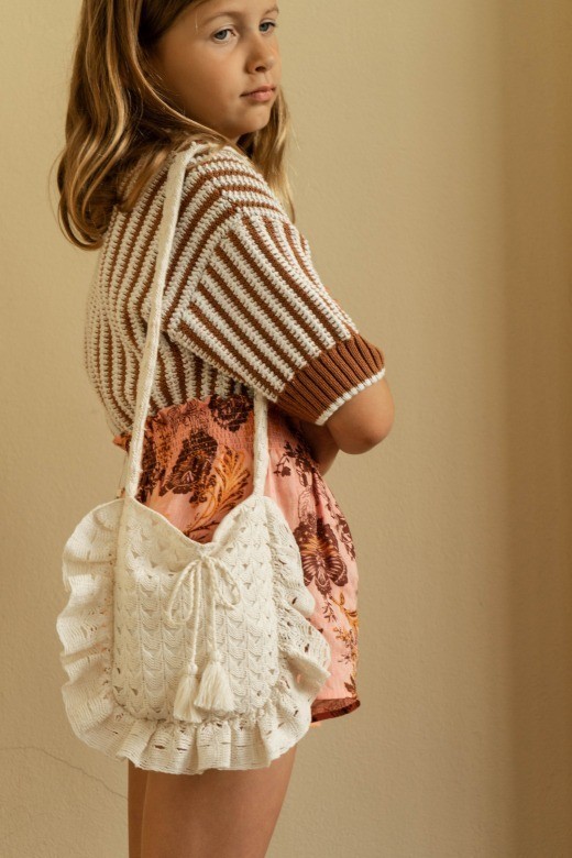 Идеально подходит для пляжного отдыха. Вязаная крючком ткань из органического хлопка это специальная разработка Bebe Organic для весны/лета. Прекрасная сумка украшена оборками и двумя кисточками-бантиками.Уход: Машинная стирка при температуре 30 °C, сушка в стиральной машине при низкой температуре, гладить во влажном виде. Не отбеливать. Использовать экологически чистые моющие средства.