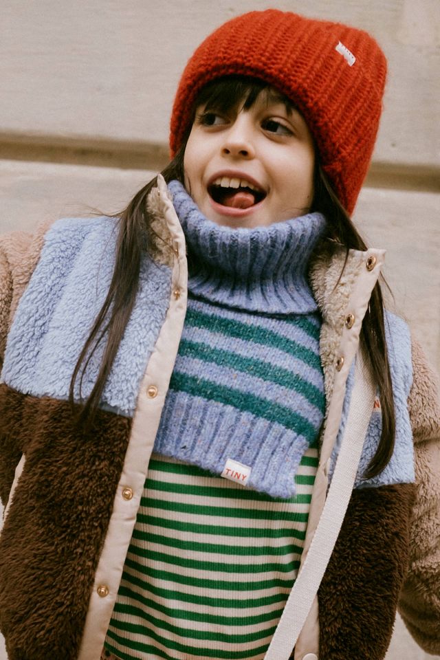 Утепленный воротник-манишка крупной вязки в полоску. Изготовлен из переработанного хлопка, шерсти и смеси альпаки.Производство: ИСПАНИЯ