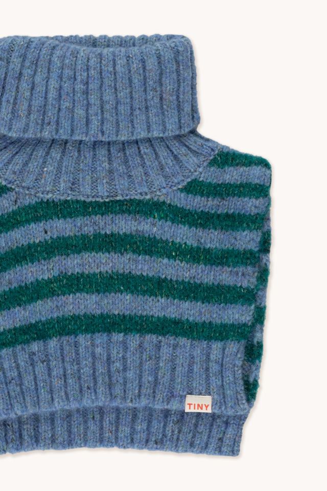 Утепленный воротник-манишка крупной вязки в полоску. Изготовлен из переработанного хлопка, шерсти и смеси альпаки.Производство: ИСПАНИЯ