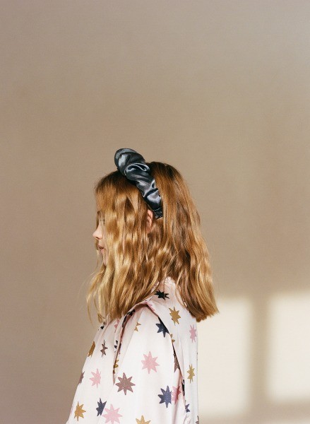 Стильный аксессуар на голову из переработанного атласного полиэстера темно-серебристого цвета со сборками по всему периметру.Производство: ПОРТУГАЛИЯ