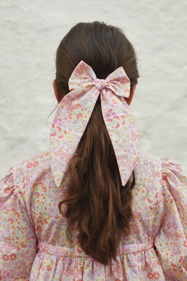 Очаровательный большой бант Cora, завязанный вручную из нежнейшего хлопка с очаровательным принтом в виде садовых цветов. Прикреплен на заколку "крокодил". Скроен, сшит и собран вручную с любовью и тщательностью. Мягкий и нежный бант придает элегантность и шарм каждому наряду.