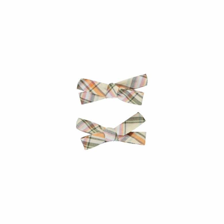 Набор фирменных бантиков в разноцветную клетку, собранных вручную, идеально подходящих для маленьких косичек. Бантики изготовлены из органического хлопка и крепятся на зажим из кожи аллигатора. Ручная работа. Идеально подходит под платье Astrid.Производство: ПОРТУГАЛИЯ