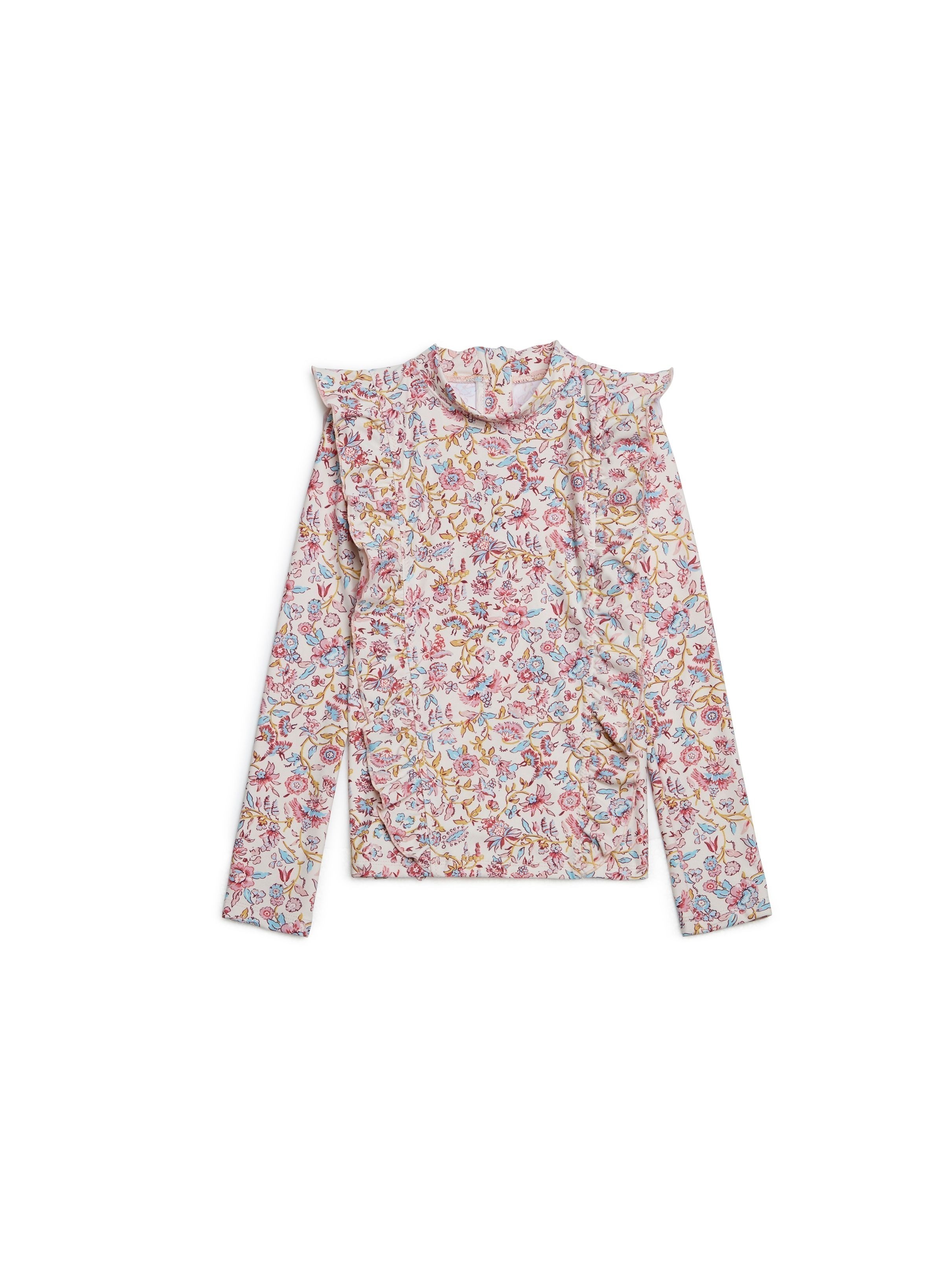 Этот купальник, состоящий из двух предметов, предназначенный для защиты от ультрафиолетовых лучей солнца, изготовлен из защитной ткани SPF 50, которая покрывает всю верхнюю часть тела, застегивается на молнию со шнурком. Вы можете быть уверены, что Ваш ребенок надежно защищен от UV лучей. Изготовлен из переработанного материала, с заботой об экологии.Производство: КИТАЙ