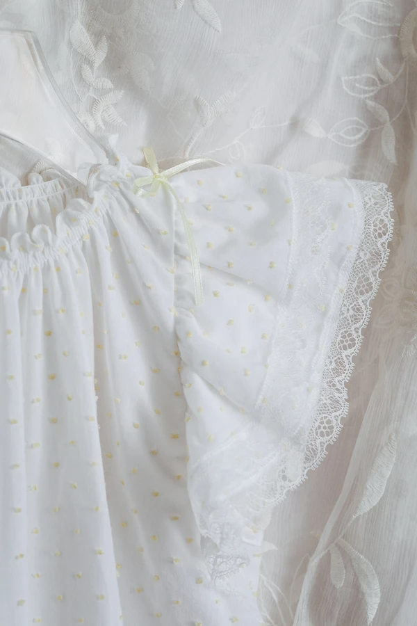 Ночная рубашка в винтажном стиле идеальное сочетание элегантного дизайна и настоящего комфорта. В этой очаровательной модели каждая девочка почувствует себя настоящей принцессой. Ее свободный крой обеспечивает полную свободу и изготовлена из высококачественного хлопка, декорирована нежнейшим кружевом и украшениями в виде бантов.Производство: ЭСТОНИЯ