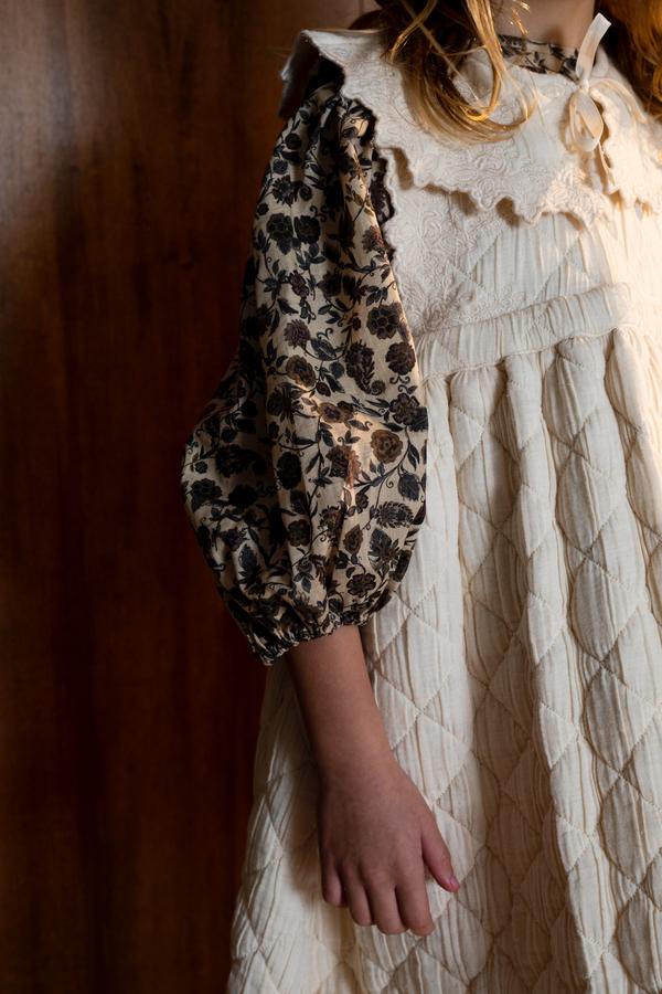 Это блуза станет любимой в этом сезоне у Вашей принцессы. Очаровательная, с рукавами-фонариками 3/4, эластичными манжетами и с винтажным цветочным принтом. Перламутровая пуговица на спине. Сочетается с элегантным вышитым воротником JOAN и бантами AMELIA.Производство: ПОРТУГАЛИЯ