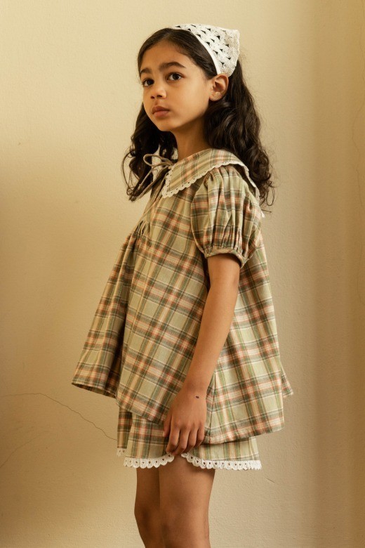Ностальгическая блузка в розово-зеленую клетку из мягчайшего хлопка и льна с очаровательным воротником с кружевной отделкой и пышными короткими рукавами. Имеет отверстие для банта спереди и свободную удобную посадку. Удобная свободная посадка. Размеры указаны в годах, выбирайте наиболее близкие к возрасту вашего ребенка.Уход: Машинная стирка при температуре 30 °C, сушка в стиральной машине при низкой температуре, гладить во влажном виде. Не отбеливать. Использовать экологически чистые моющие средства.
