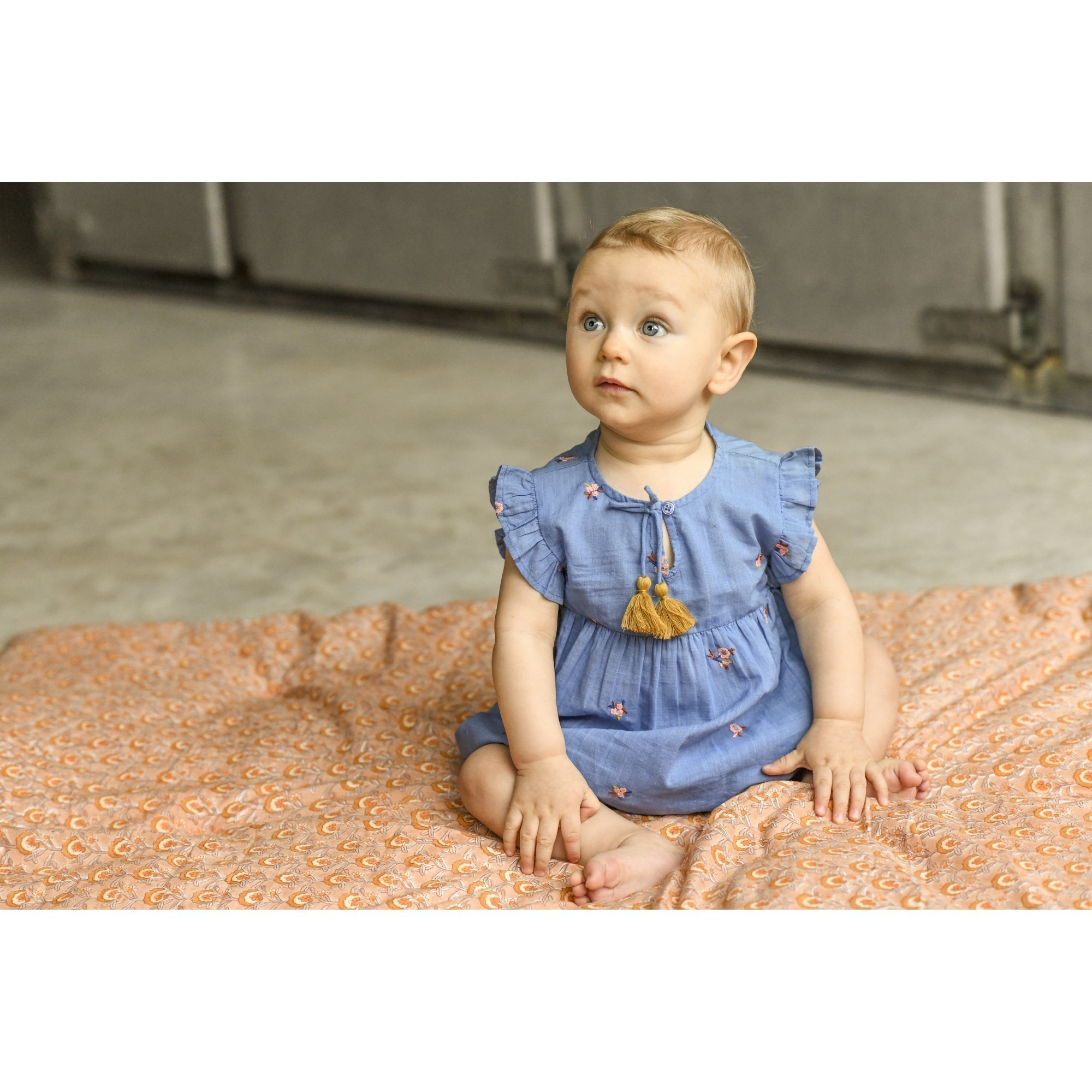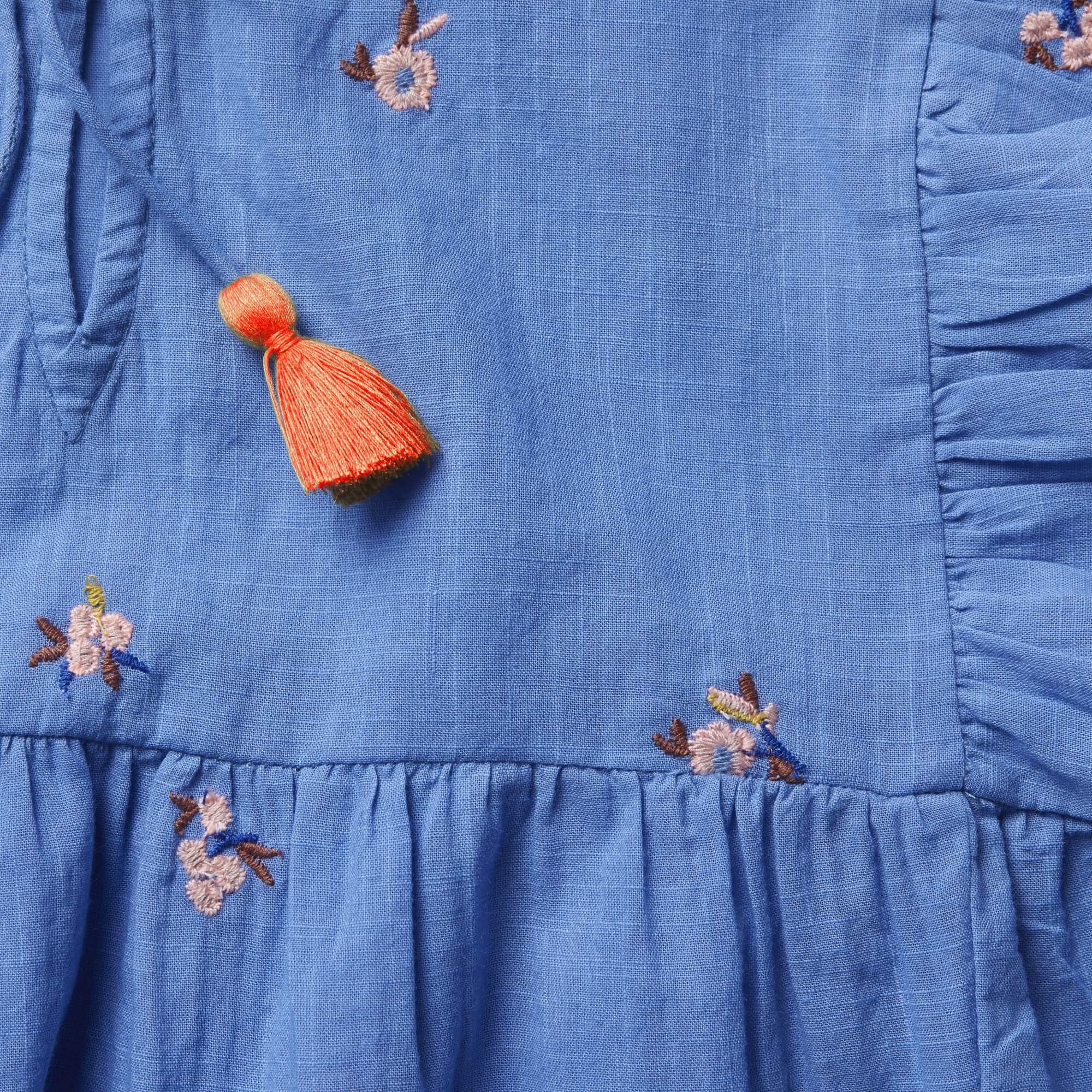 Голубая блуза для девочки с богемной контрастной вышивкой и маленькими контрастными кисточками.Уход: Стирка при температуре 30°, деликатный режим, стирать с аналогичными цветами, гладить при низких температурах.