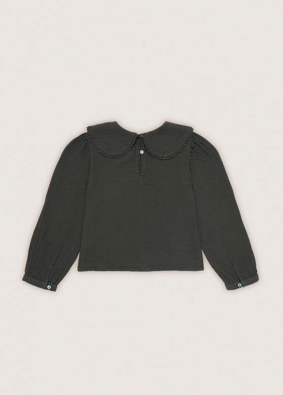 Блуза из муслина с воротником "Питер Пэн", отделанным мелким кружевом, которое придает модели женственности и утонченности. Красивого темно-зеленого цвета, застегивается на пуговицу сзади, рукав со сборкой на плече и небольшой манжетой.Уход: Стирка при температуре 30 градусов, не отбеливать, сушить при низкой температуре (до 60 градусов), гладить при средней температуре (до 150 градусов), химчистка с использованием углеводородных растворителей по обычному режиму.Производство: ПОРТУГАЛИЯ