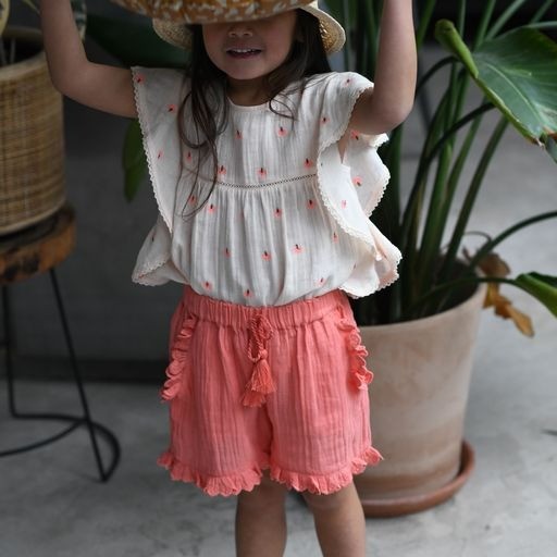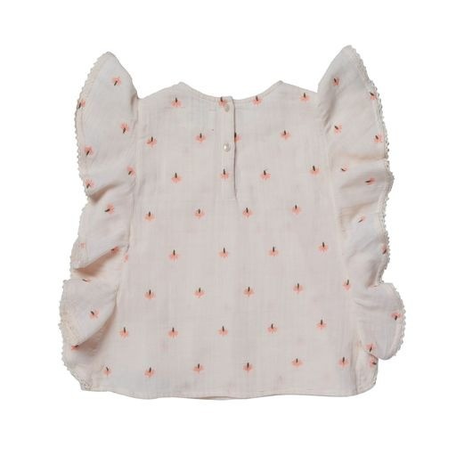 Очаровательная блуза с объемными, летящими рукавами, отделанными зубчатыми элементами, планка на пуговицах сзади, Уход: Стирка при температуре 30°, деликатный режим, стирать с аналогичными цветами, гладить при низких температурах.Производство: ИНДИЯ