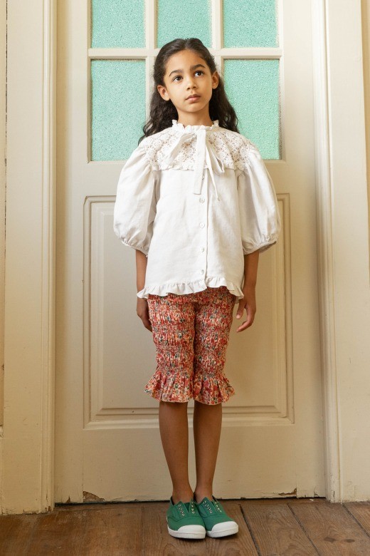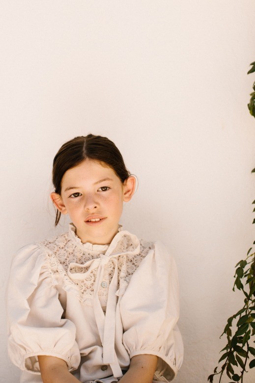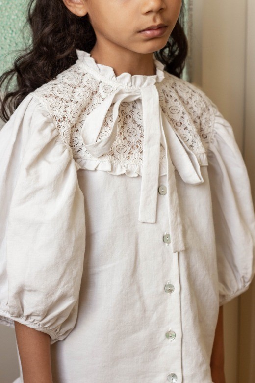 Очаровательная блуза из льняной и хлопчатобумажной ткани. Сшито с вниманием к деталям - с короткими присборенными пышными рукавами и перламутровыми пуговицами спереди, кружевной тканью на груди и бантом на воротнике.Уход: Машинная стирка при температуре 30 °C, сушка в стиральной машине при низкой температуре, гладить во влажном виде. Не отбеливать. Использовать экологически чистые моющие средства.Производство: ПОРТУГАЛИЯ