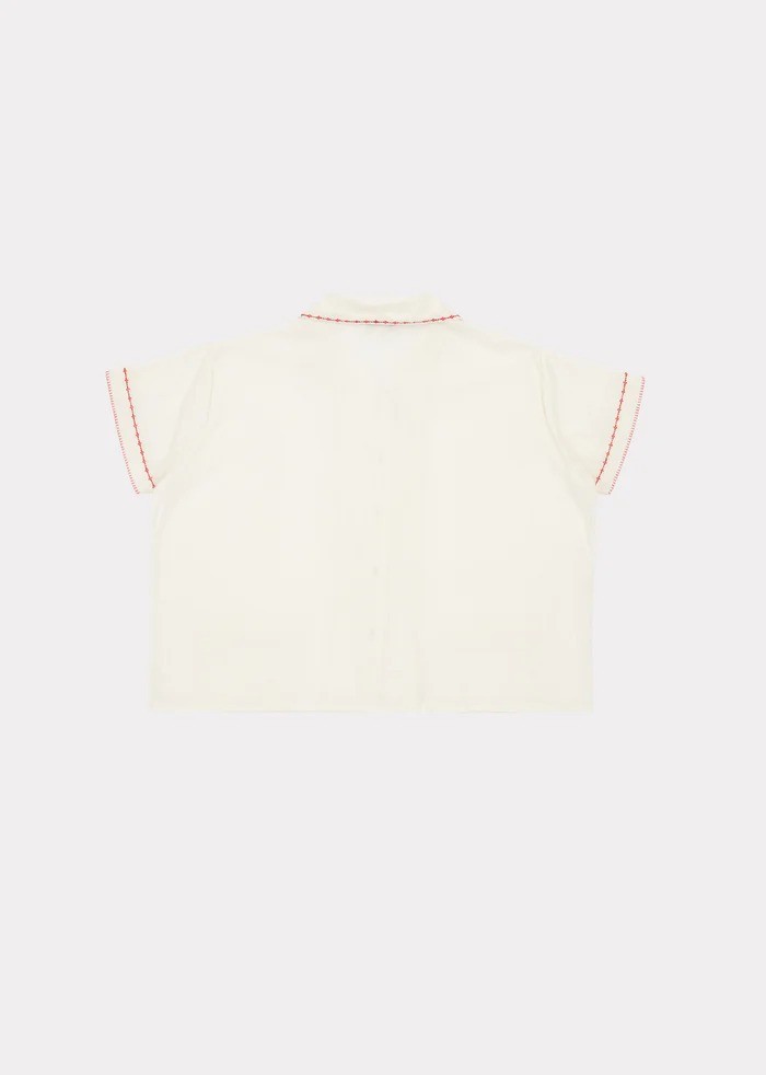 Рубашка, выполненная из мягкого белоснежного хлопка, имеет квадратный силуэт, дополненный изящной красной строчкой по контуру и деталями карманов.Производство: ИНДИЯ