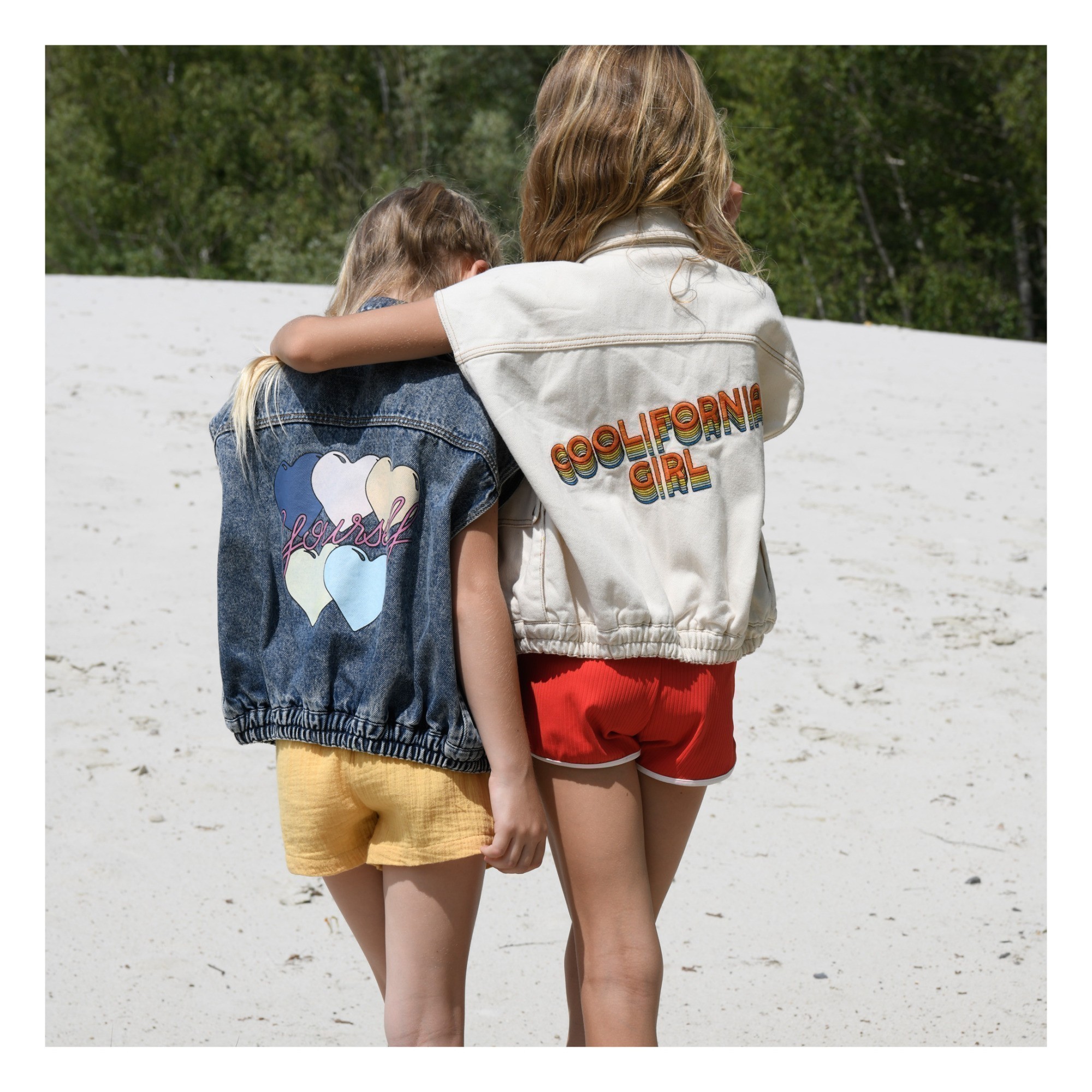 Модный хлопковый жилет цвета экрю. Застегивается на молнию и кнопки. Сзади текстовый принт