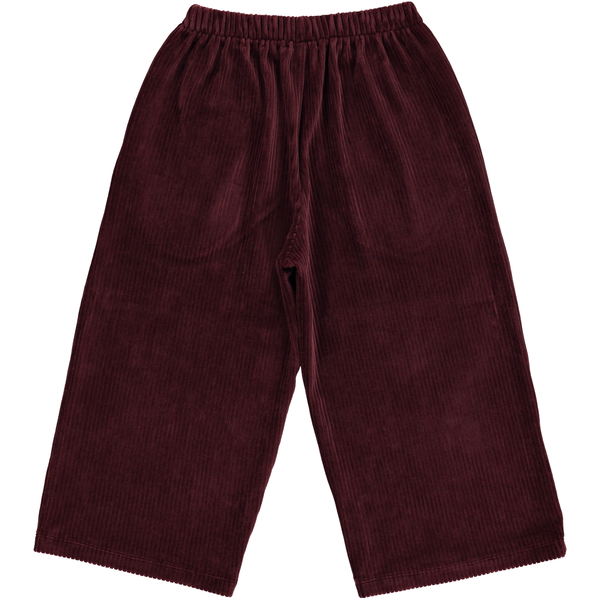 Комфортные велюровые брюки-кюлоты с широкими штанинами в рубчик шикарного сливового цвета. Эластичная талия для дополнительного комфорта.