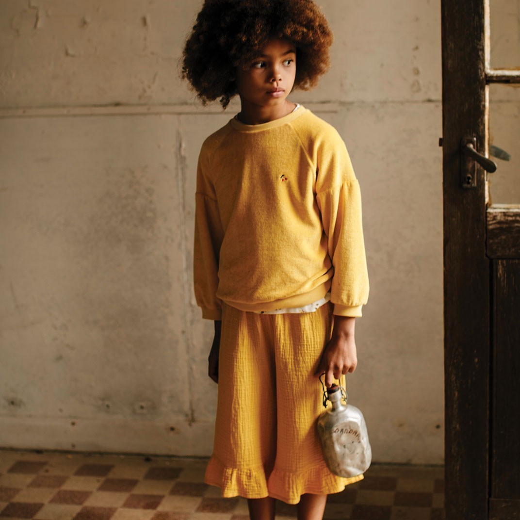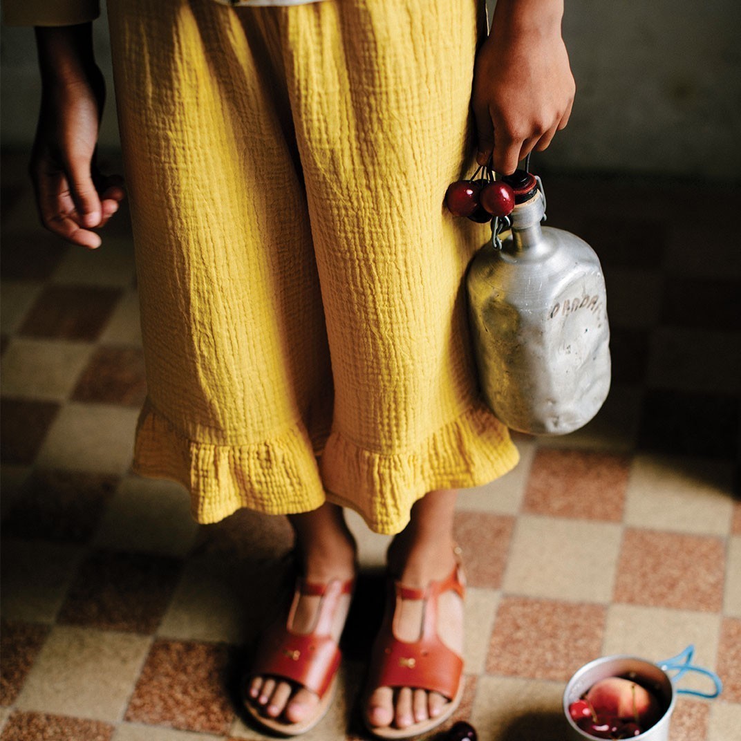 Солнечные широкие брюки - кюлоты на резинке. По низу отделка рюшью, ткань очень мягкая и комфортная.Прекрасно сочетаются с разноцветными майками, топами и денимом.Производство: ПОРТУГАЛИЯ