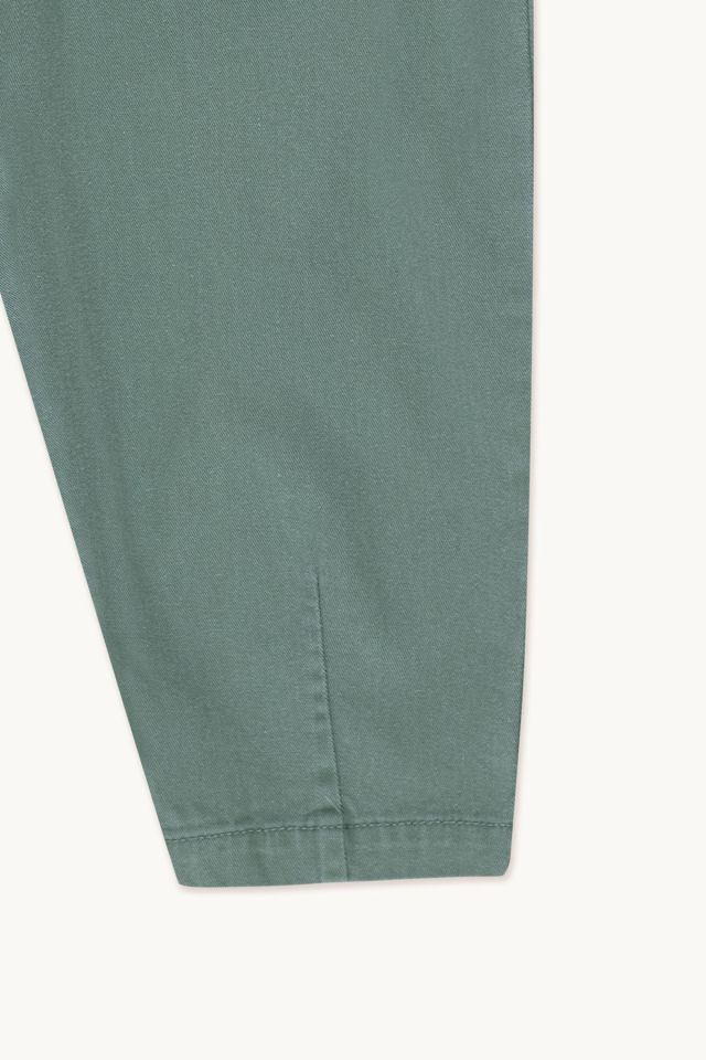 Брюки светло-бирюзового цвета со складками. Широкие брюки свободного кроя, зауженные к низу, с оригинальной складкой. Эластичная задняя часть пояса, перед на молнии и пуговице. Боковые карманы и слегка укороченный силуэт.Производство: ИНДИЯ