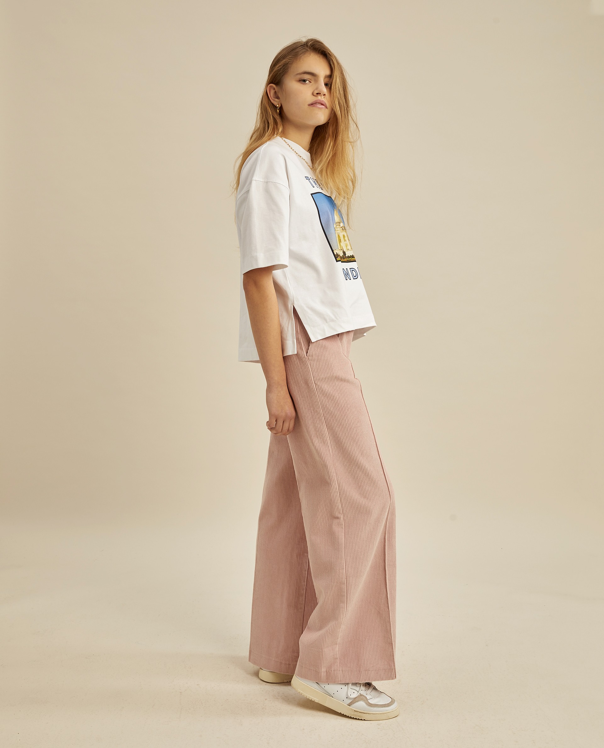 Широкие брюки красивого розового цвета из крупного вельвета.Отлично будут сочетаться с разными моделями одежды серого и зеленого цвета данного бренда.Производство: ТУРЦИЯ