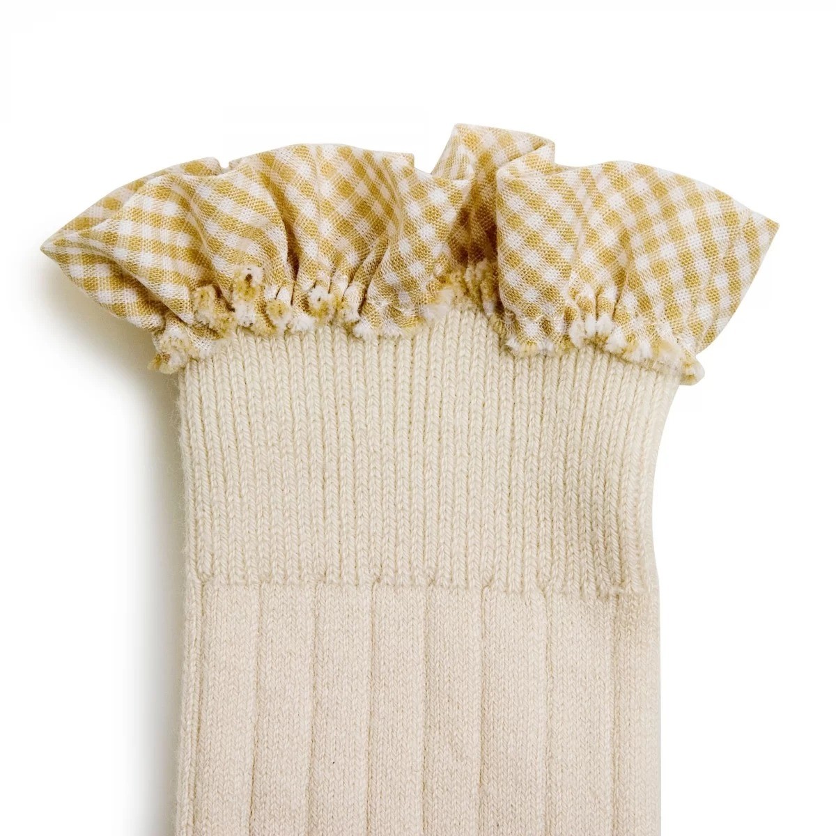 Гольфы APOLLINE экрю с оборкой мелкая клетка