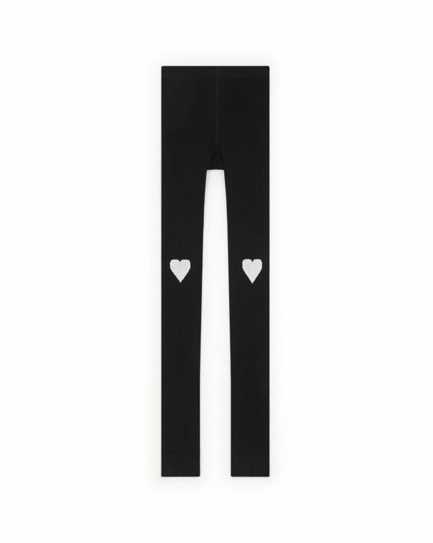 Легинсы из джерси черного цвета с большими сердечками на коленях и удобной резинкой.Уход: деликатная стирка при температуре 30 градусов, не отбеливать, стирать с аналогичными цветами.