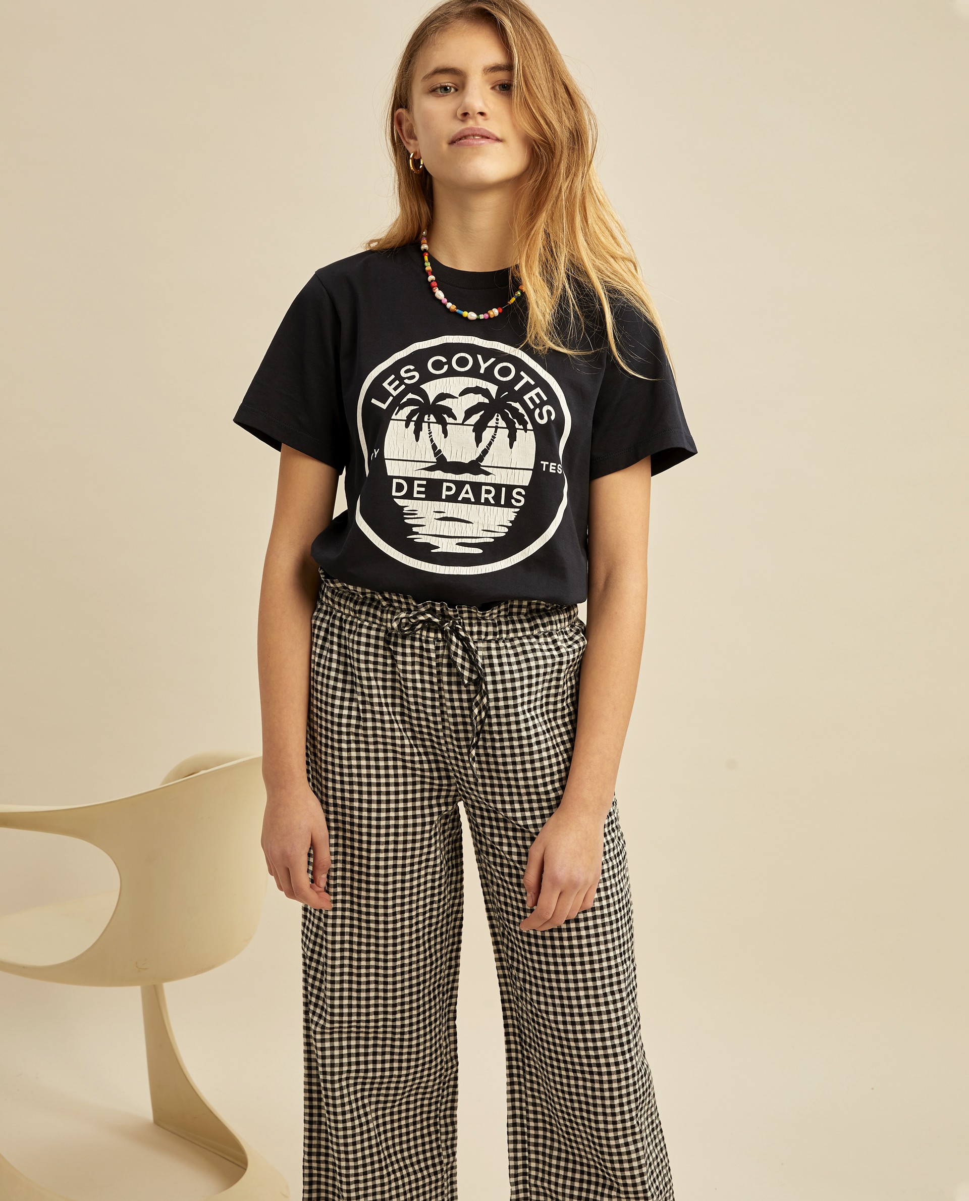 Черная хлопковая футболка с контрастным принтом на груди.Отличное качество и комфорт.