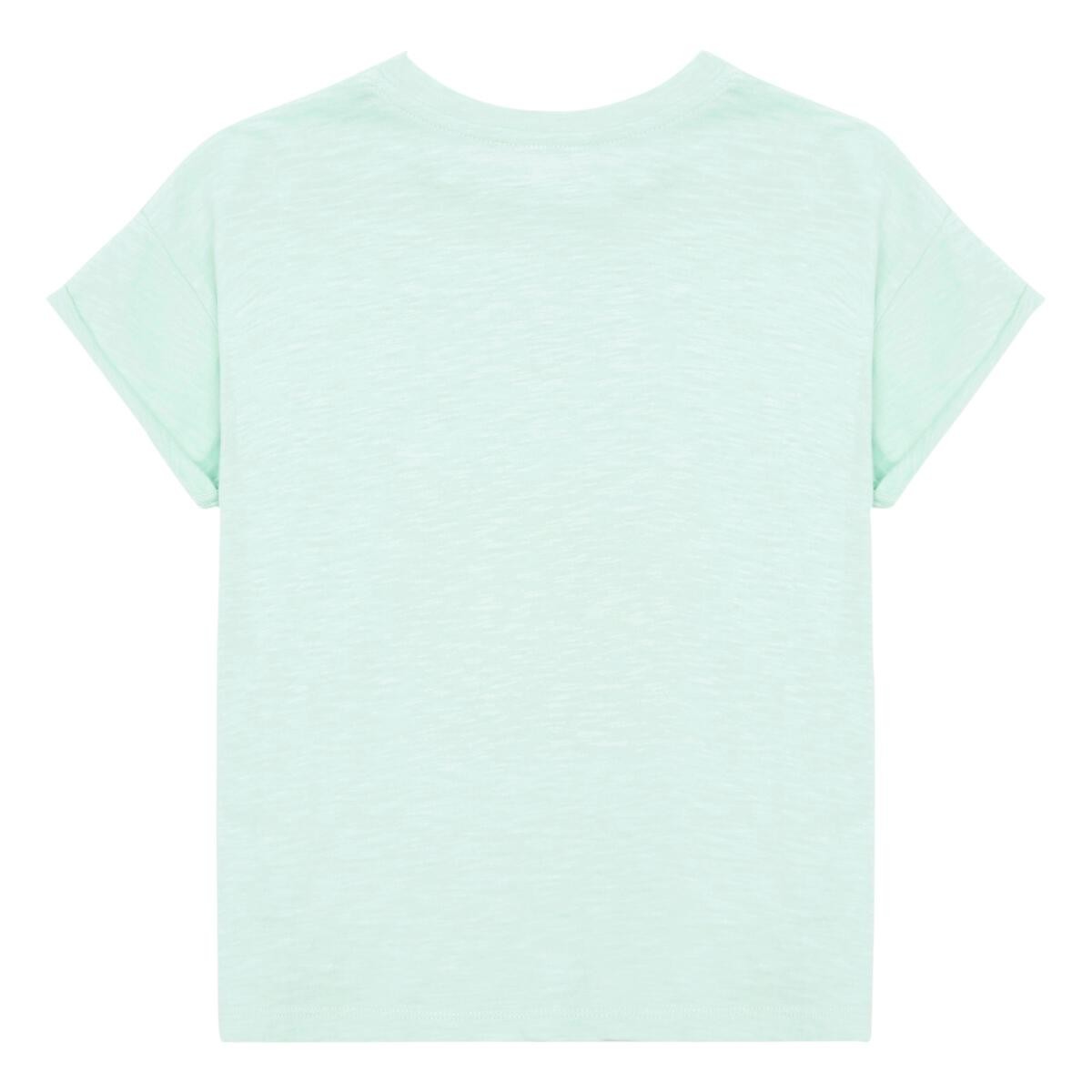Легкая футболка из 100% органического хлопка нежного мятного цвета. Подходит для очень жаркой погоды, т.к. гигроскопична и не содержит искусственных волокон. Лаконичный принт.Производство: ПОРТУГАЛИЯ