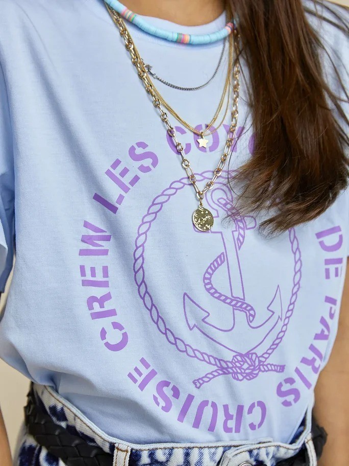 Футболка с винтажным принтом красивого голубого оттенка. Отлично сочетается с низом любого вида, который Вы предпочитаете, или который подходит под Ваше настроение. Удобная и стильная модель на лето.