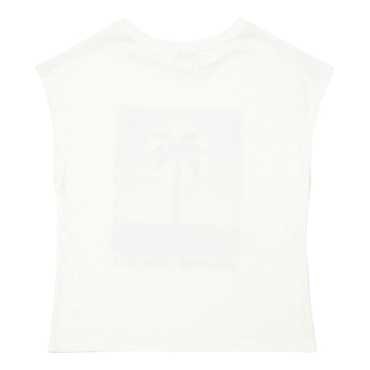 Белая футболка с винтажным принтом из 100% органического хлопка. Прямой крой без рукавов. Легкая, почти воздушная, идеально подойдет для очень жаркого летнего дня.Производство: ПОРТУГАЛИЯ