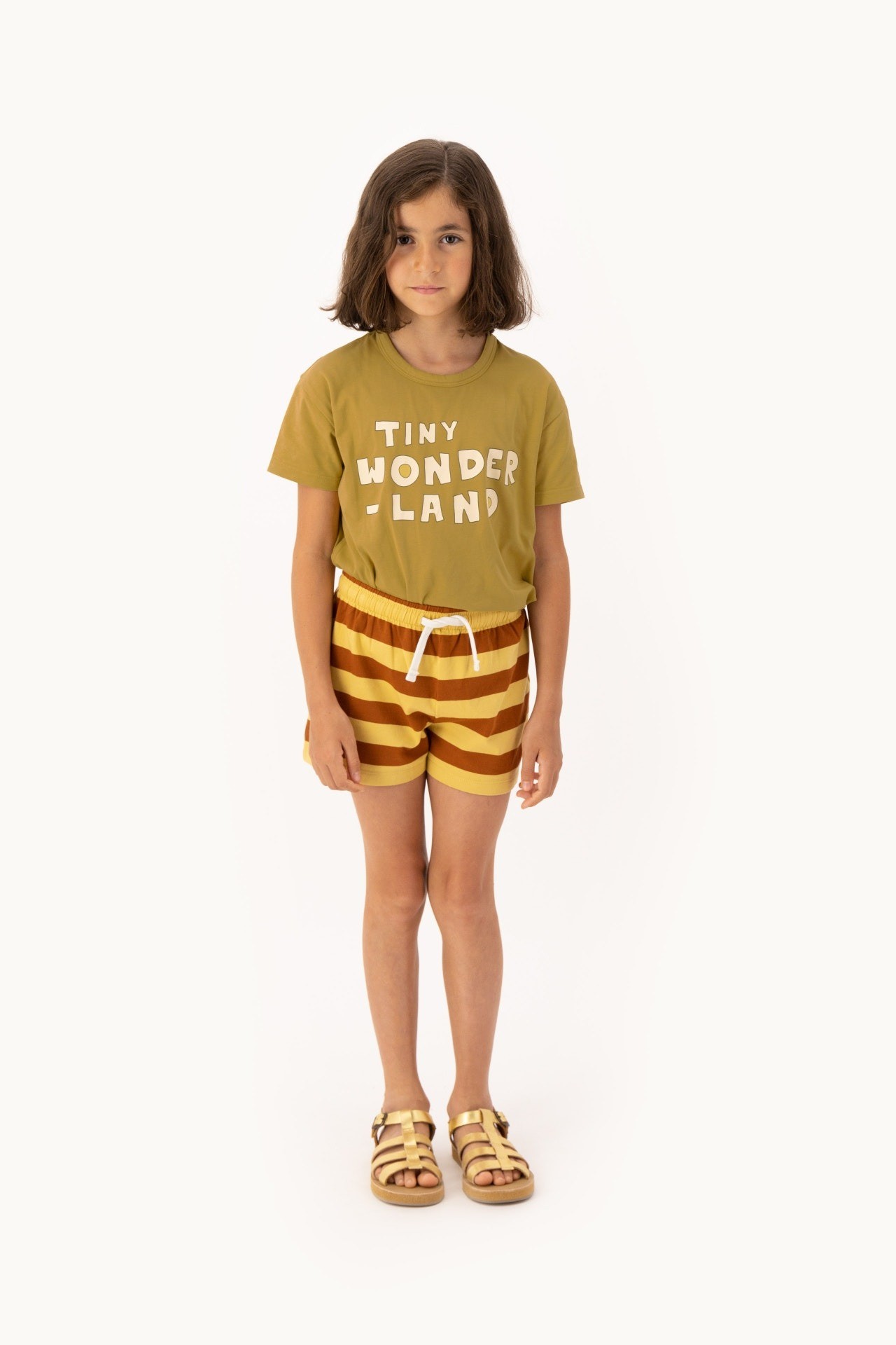 Окунитесь в волшебство с футболкой Tiny Wonderland цвета зеленой охры. Этот топ, названный в честь коллекции весна-лето 24, изготовлен из органического хлопка и эластана, обеспечивающих комфорт и немного эластичный. Он украшен игривым мотивом «Страна чудес», вдохновляющим на приключения воображения.Производство: ИНДИЯ