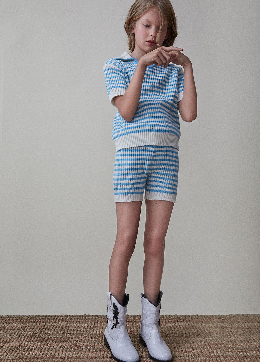 Помимо натурального состава (100% хлопок), поло имеет ажурную структуру, что позволяет ему хорошо держать форму. Легкое, приятное к телу изделие сделает даже самый жаркий день комфортным, за счет циркуляции воздуха через ткань. "Морская" расцветка хорошо сочетается с различными цветами и очень нравится детям. Идеальная пара для артикула K830201.