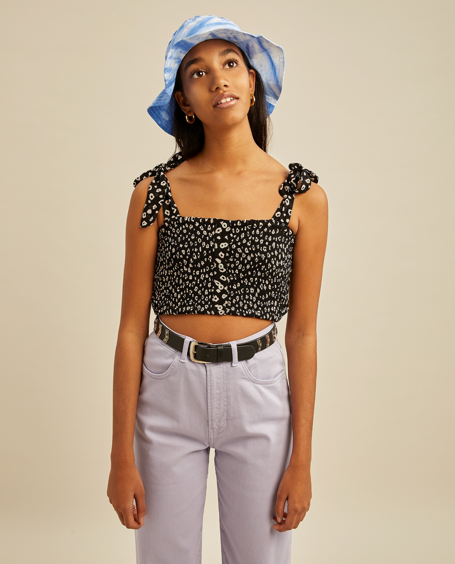 Нарядный укороченный топ на широких лямках. Модель "жатка-резинка" спереди на пуговицах(расстегиваются).Бантики на лямках съемные. Прекрасно будет и с джинсами или легкими брюками.Производство: ИНДИЯ