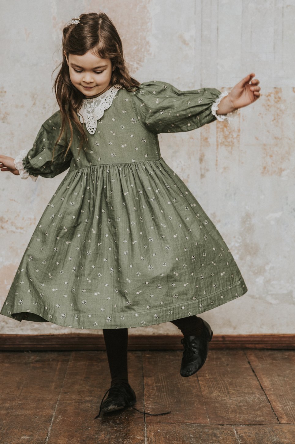 Восхитительное платье цвета "сочной зелени" . Красивый вязанный воротничок цвета экрю и кружева на рукавах 3/4 делают эту модель безумно красивой. Ткань очень мягкая и комфортная. Данная марка немного "большемерит" и поэтому при выборе размера нужно это учитывать.Производство: ПОРТУГАЛИЯ