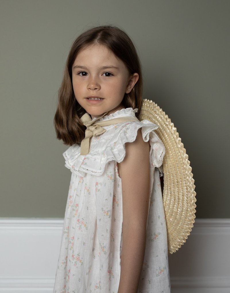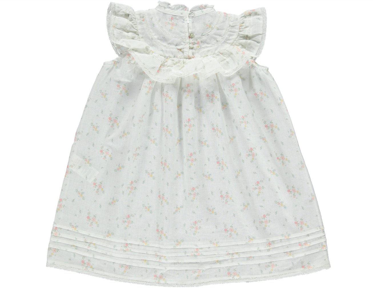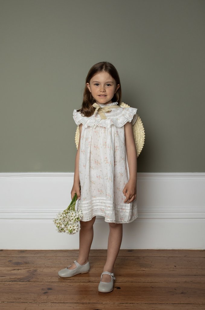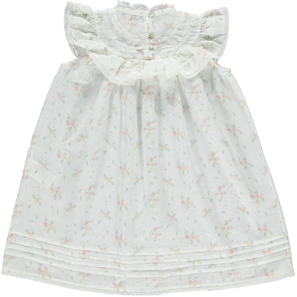Красивейшее платье без рукавов с цветочным принтом. Оно станет самым любимым в гардеробе маленькой кокетки.Застегивается сзади на пуговичку. Внутри хлопковая подкладка.Производство: ПОРТУГАЛИЯ
