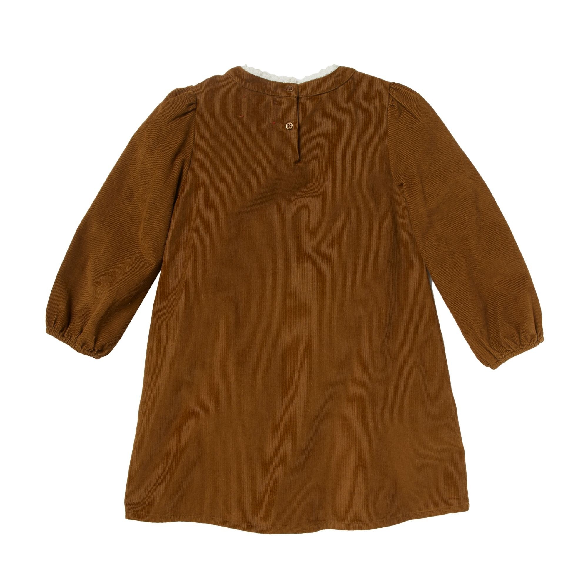 Вельветовое платье с вышивкой в стиле «богемного» шика сочетается с винтажными деталями: тесьма макраме на вырезе. Цветочная вышивка, разработанная брендом, на передних присборенных кокетках. Застежка сзади.Производство: ФРАНЦИЯ