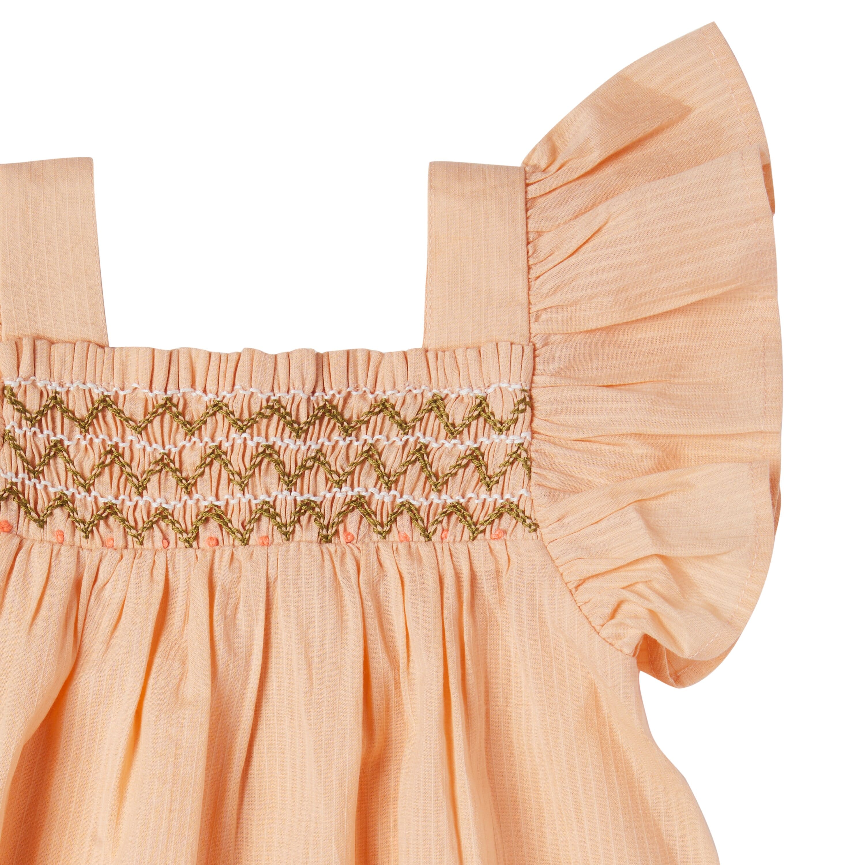 Платье нежного абрикосового цвета с лямками-крылышками с вышивкой на груди. Застежка - пуговицы на спинке. Для повседневного образа и летнего праздничного дня. Производство: ИНДИЯ