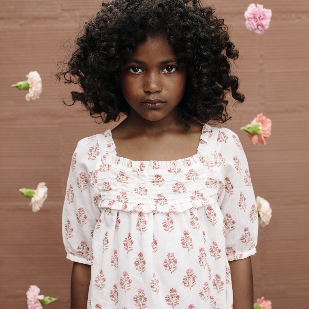 Очень красивое и оригинальное платье с нежным цветочным принтом на летний период. Квадратный вырез, декорированный резинкой и рюшами, 3/4 рукава-воланы, оригинальный низ, напоминающий волну и очень нежная, едва заметная брендированная вышивка сделают образ Вашей принцессы уточненным.Производство: ИНДИЯ