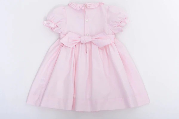 Фирменное платье от бренда. Модель из хлопкового твила нежного розового цвета с тройным воротником и присборенными деталями на груди и концах рукавов делает эту модель неподвластной времени и утонченной. Подходит для особых случаев.Производство: МАДАГАСКАР