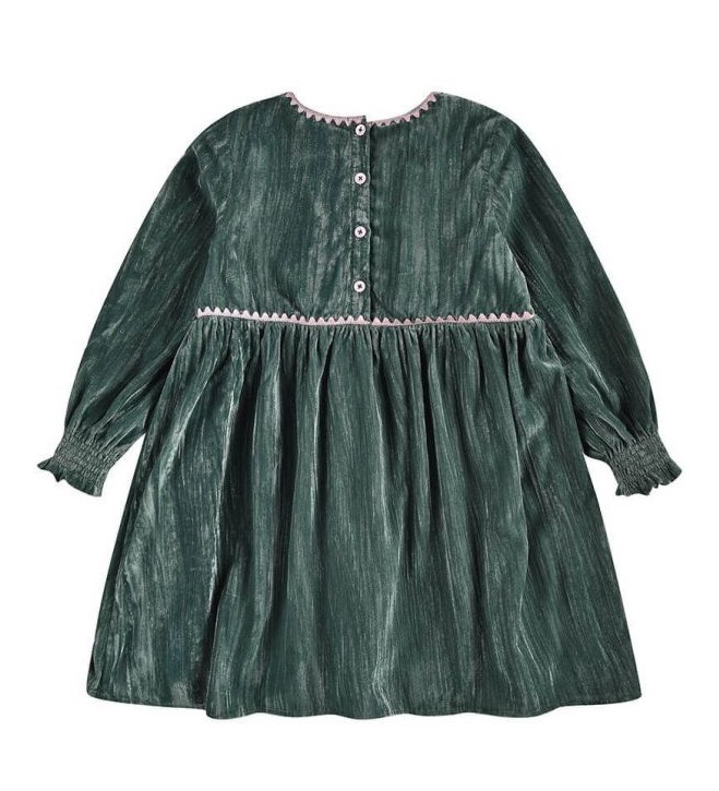 Красивое бархатное платье must have в гардеробе маленьких принцесс. Нежная цветочная вышивка в сливовых и розовых тонах, сочная вышивка на пластроне, вышитые детали на вырезе и талии, V-образный вырез с галстуком и помпонами ручной работы, манжеты со сборками, застежка сзади с пуговицами с жемчужным эффектом, на подкладке.Производство: КИТАЙ