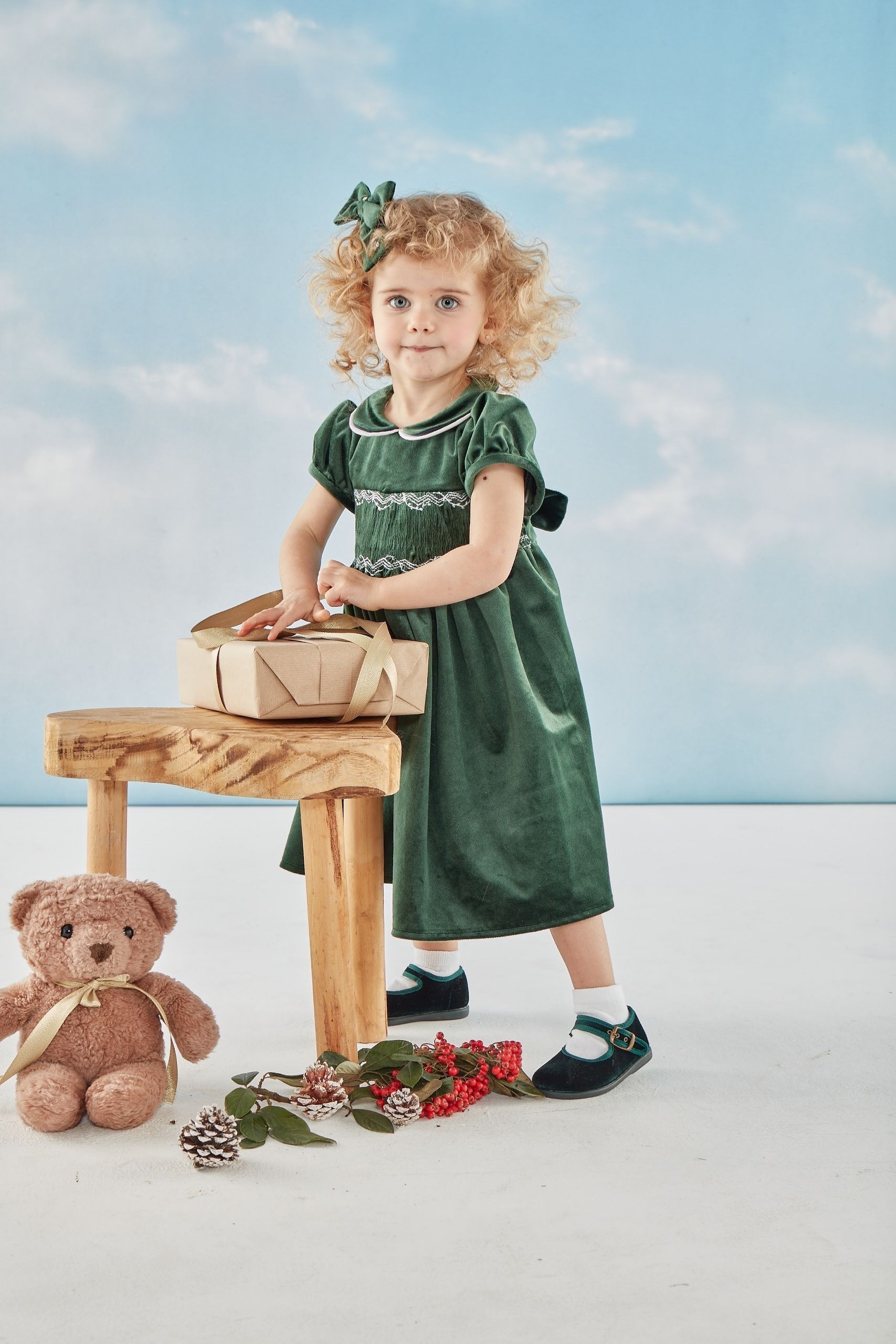 Праздничное платье из бархата с пышными рукавами и контрастным двойным воротником.Производство: МАДАГАСКАР