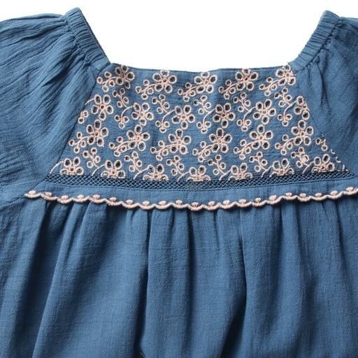 Нежное платье для настоящих принцесс. Кокетка украшена шитьем контрастного цвета, а рукава зубчатыми элементами.Уход: Стирка при температуре 30°, деликатный режим, стирать с аналогичными цветами, гладить при низких температурах.Производство: ИНДИЯ