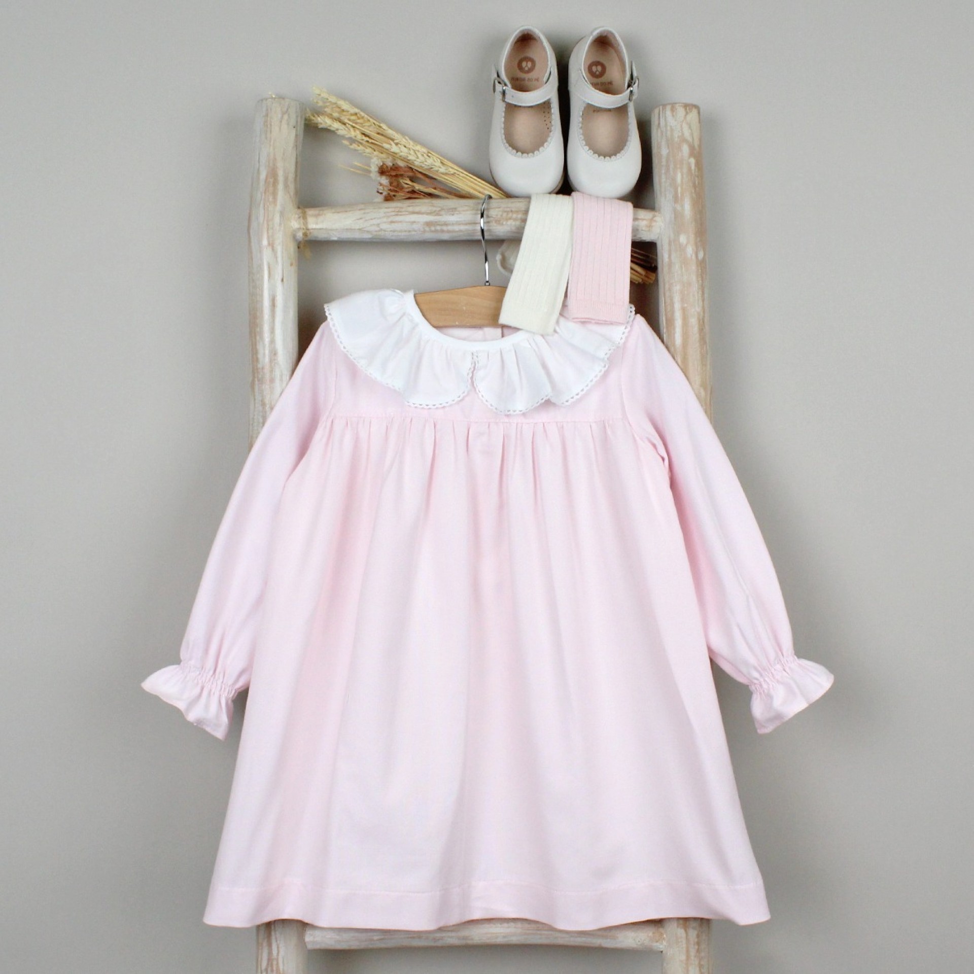 Платье LONG SLEEVE WITH COLLAR PINK