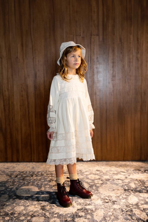 Традиционное платье изготовлено из мягкого двойного муслина и органического хлопка с красивым винтажным кружевом в виде роз, украшающим кромку, рукава и грудь. Прекрасный выбор для любого мероприятия. Изысканный силуэт с длинным рукавом с кружевными деталями и нежной оборкой воротника кружевом.Производство: ПОРТУГАЛИЯ