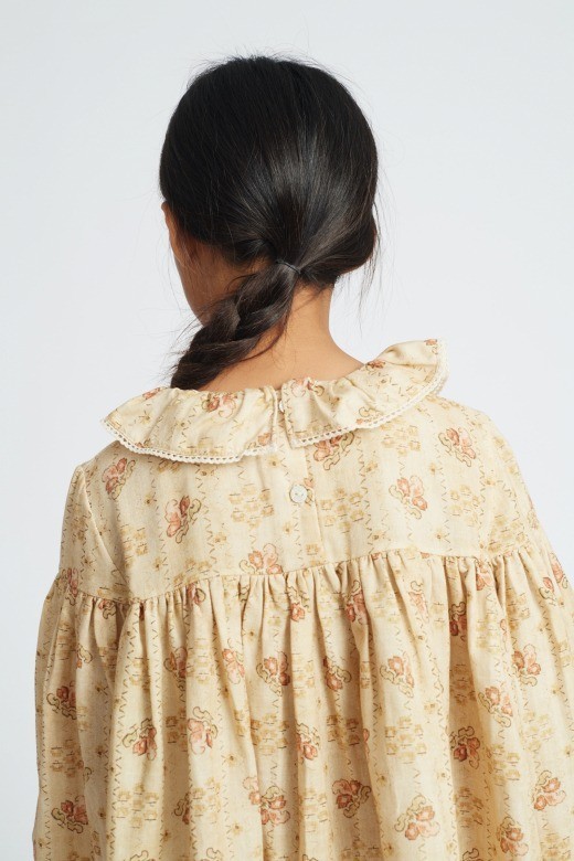 Платье с геометрическим цветочным принтом изготовлено из мягчайшего муслина из органического хлопка. Рукава-баллоны и гофрированный воротник с кружевом и элегантными защипами, юбка с воланами.Уход: Машинная стирка при температуре 30 градусов, сушка в стиральной машине при низкой температуре, гладить слегка влажным. Не отбеливайте и не используйте окислители.Производство: ПОРТУГАЛИЯ