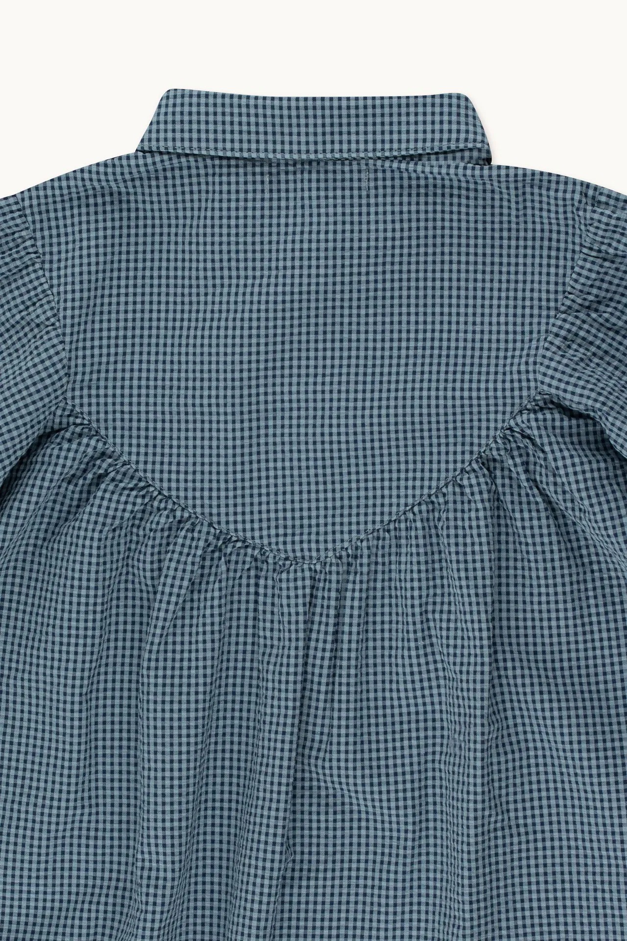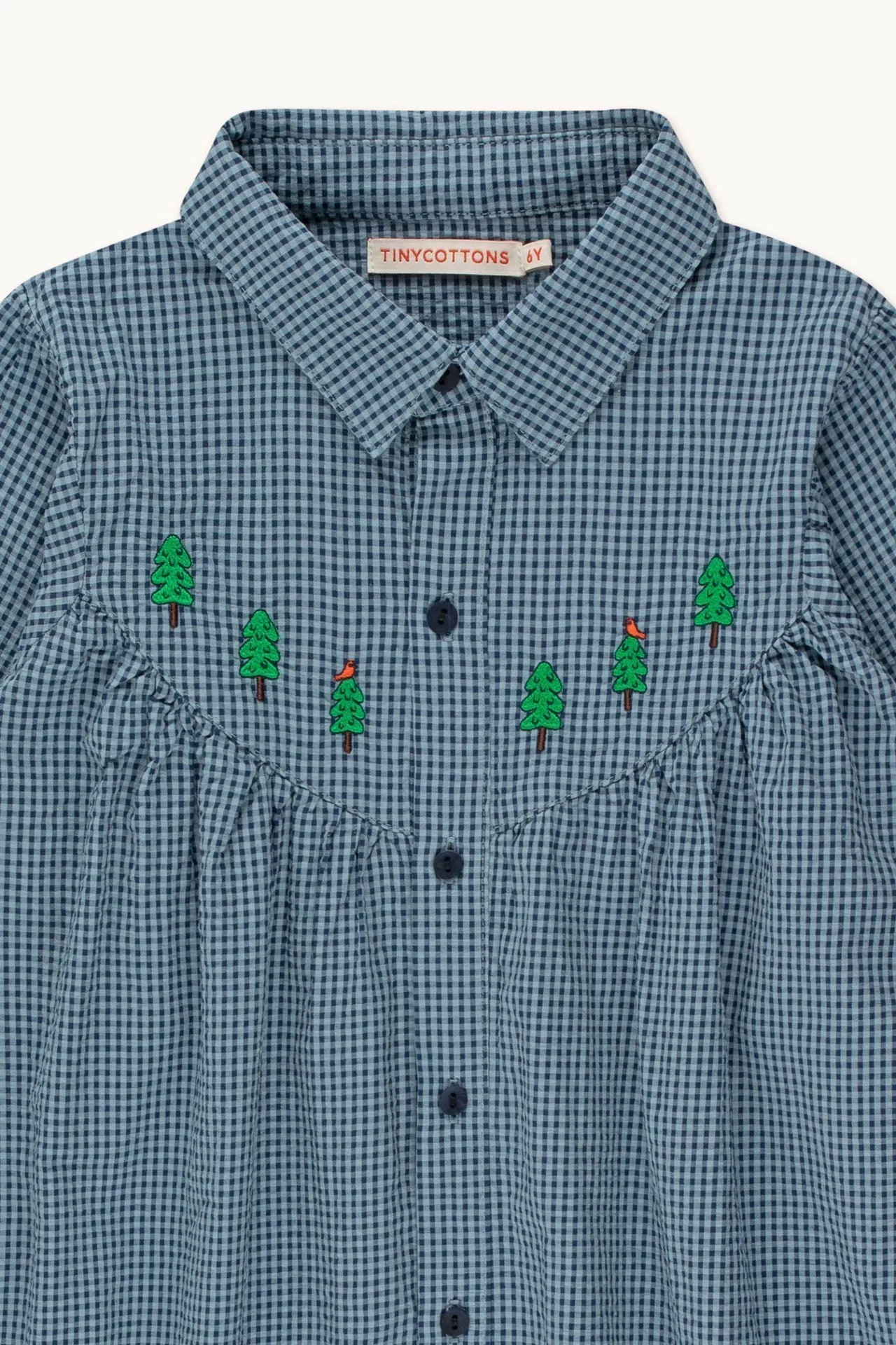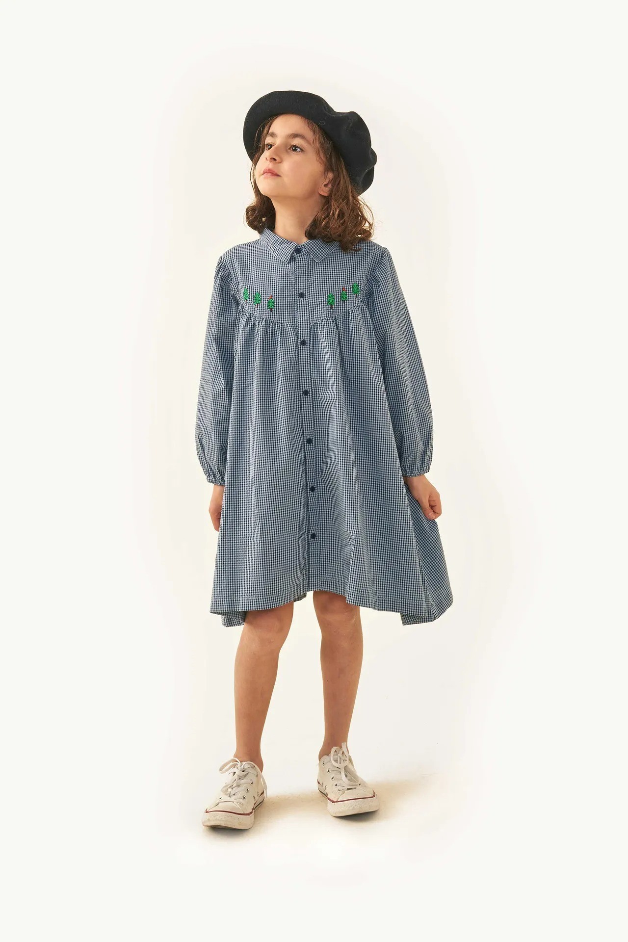 Платье в клетку с забавной вышивкой с воротником-стойкой, застегивается спереди на пуговицы сверху до низу, легкая сборка в верхней части модели, эластичный край рукава.Производство: ПОРТУГАЛИЯ