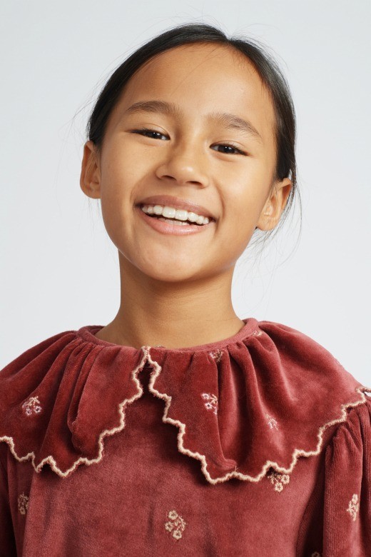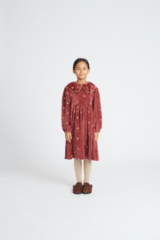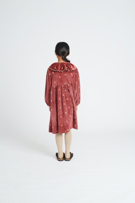 Велюровое платье красивого цвета розового дерева сшито из органического хлопка высочайшего качества с цветочной вышивкой по всему изделию. С длинными рукавами и объемным воротником с оборками и красивой вышивкой из хлопка. Идеальное платье, которое украсит любой особый случай в этом осенне-зимнем сезоне.Уход: Машинная стирка при температуре 30 градусов, сушка в стиральной машине при низкой температуре (до 110 градусов), гладить во влажном виде. Не отбеливайте и не используйте окислители.Производство: ПОРТУГАЛИЯ