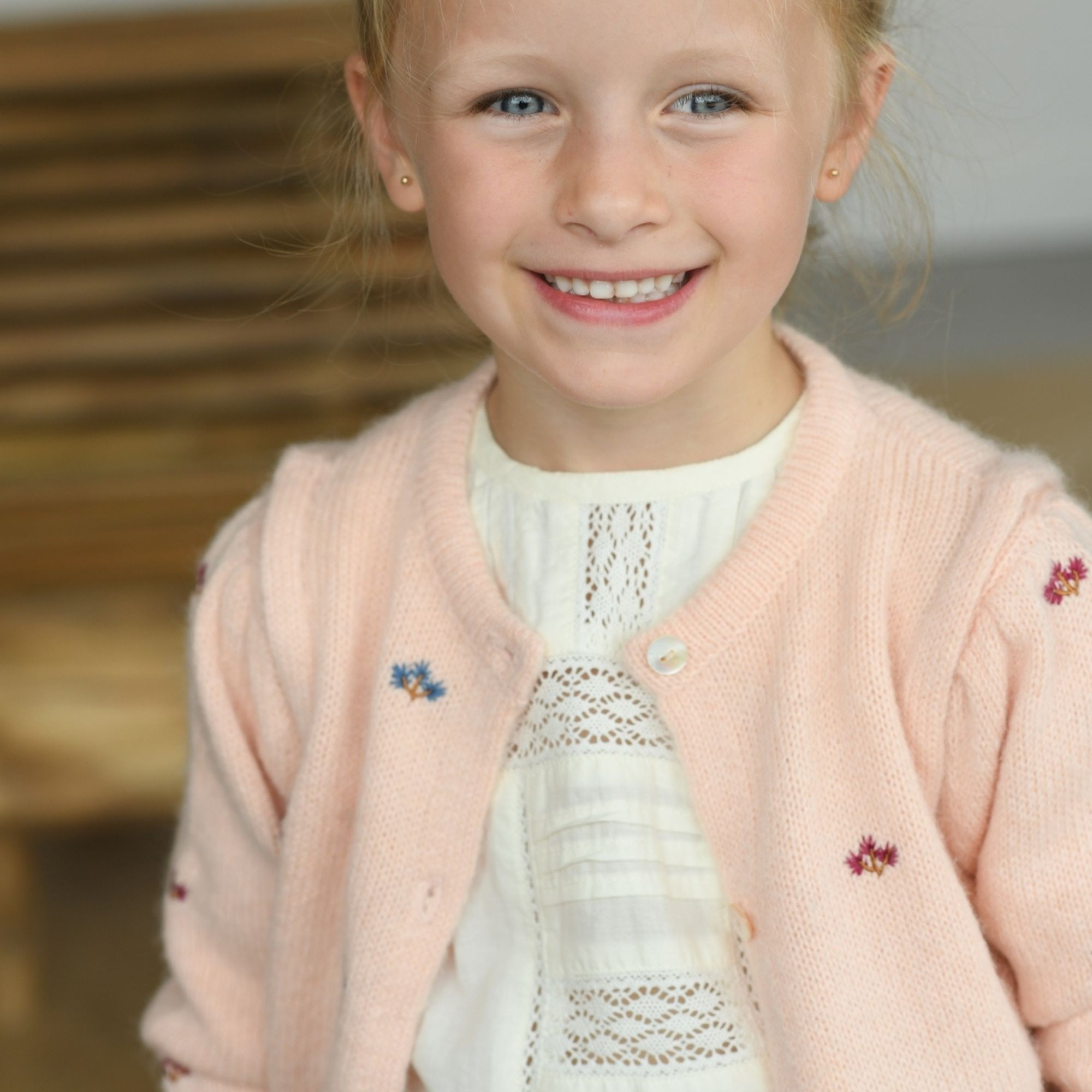 Кардиган вышитый цветами, складки на плечах и небольшие сборки, придающими изделию современность, застегивается спереди, связано резинкой 1/1 по низу и рукава.
