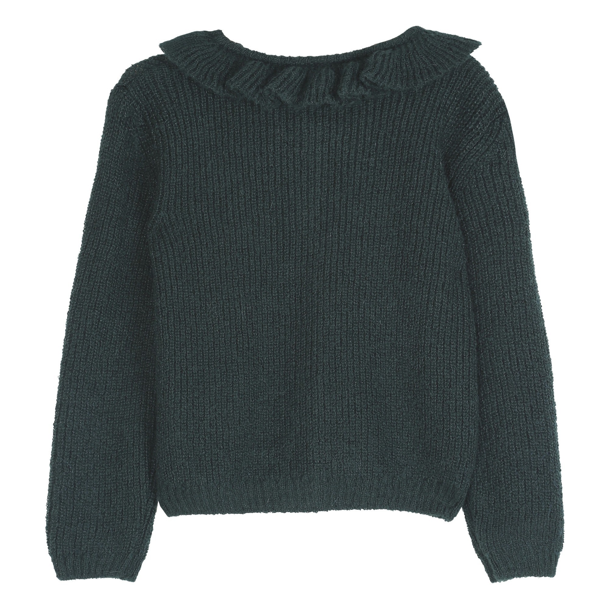 Красивый теплый кардиган цвета "Изумруд". Круглый объемный волнистый воротничок создает некий романтичный стиль,  и хорошо сочетается с красивыми пуговками на застежке спереди.